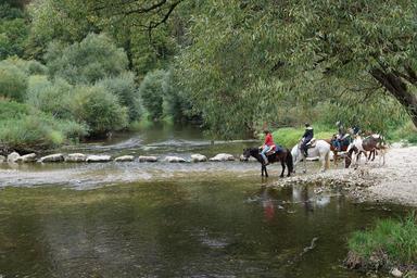 Keywords: horses danube water ride sport cross danube valley donauwelle stones river animal germany girl woman tree forest green blue nature landscape holiday benefit from relaxation fridingen beuron