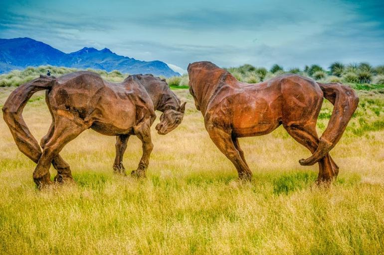 Keywords: horses hills golf course new zealand arrowtown queenstown mountains beautiful nature natural mountain sky colorful summer landscape horse sculptures