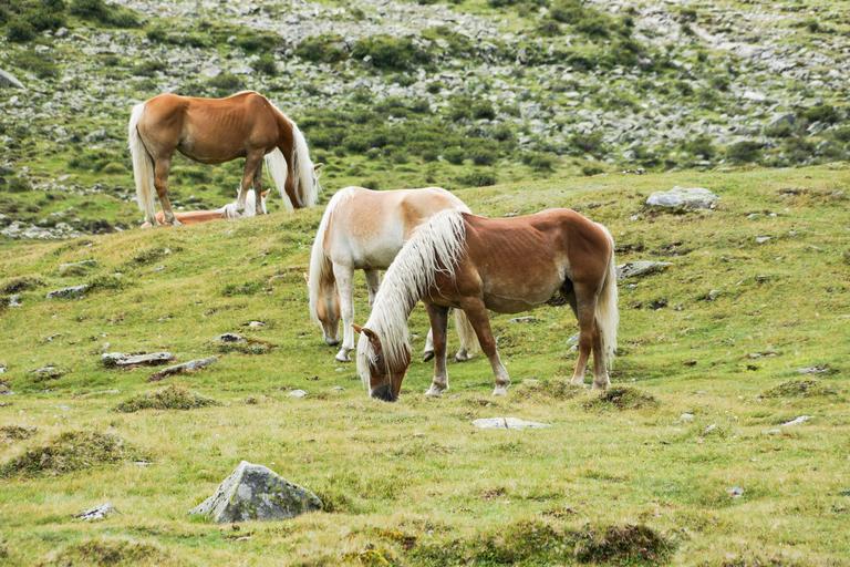 Keywords: horses horse alm meadow graze pasture mountain meadows landscape juicy grass herbivores mammals grass eat