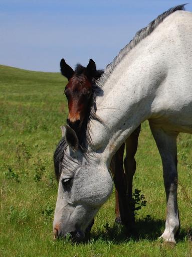 Keywords: horses mare foal field meadow grass plants cute sky clouds rural country countryside nature outside summer spring
