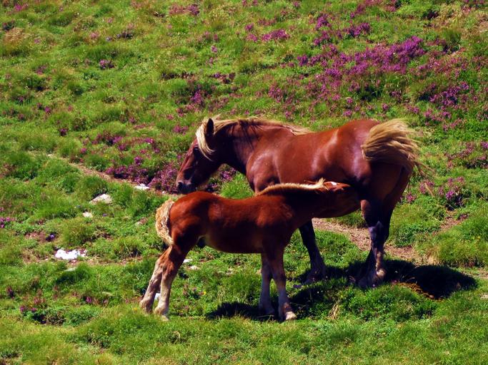 Keywords: horses prado prairie green nature pastures animals herd of horses high mountains