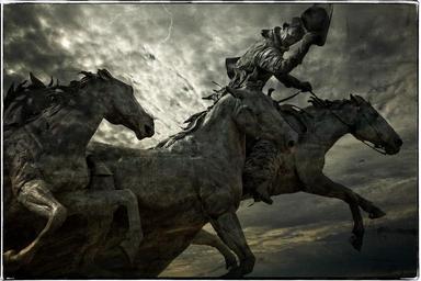 Keywords: horses rider statue textured grungy creative background computer graphic artwork surreal digital graphic design sculpture