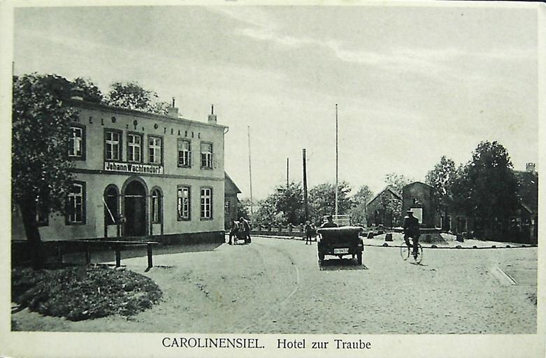 Keywords: Hotel Carolinensiel.JPG Das alte Hotel zur Traube in der Ortsmitte von Carolinensiel dahinter auf der rechten Seite sieht man das Kriegerdenmal für die Gefallenen des 1 Weltkrieges Heute nicht mehr vorhanden Das Photo zeigt den wiederaufkommenden Tourismus Automobil in den 20er Jahren alte Postkarte 1921 Agricola PD Carolinensiel PD-old-70-1923 |