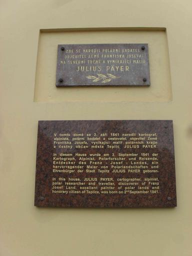 Keywords: Hotel Payer Teplice D - deska.JPG Fotografie Teplické hospody U Černé kočky poblíž hotelu Giovanni own 2012 Takmocsekretovanej Hotel Payer Plaques in Teplice Julius von Payer Multilingual signs in the Czech Republic Cc-zero