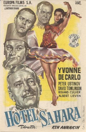 Keywords: cine clasico ingles carteles programas de mano programasdemano english films englishfilms people groupshot cartoon text drawing poster book illustration 1951. Hotel Sahara 1951. Hotel Sahara