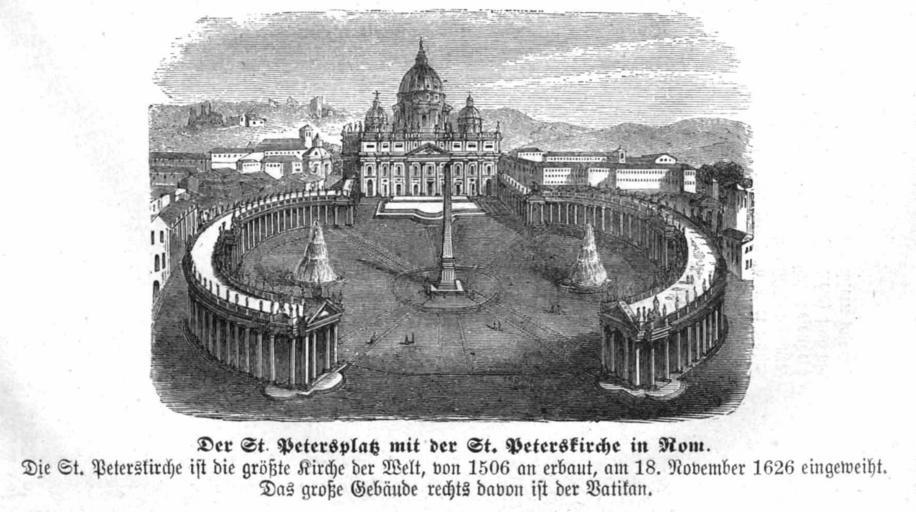 | Keywords: Hottinger Volksblatt 1878 051 Bild1.jpg St Peterskirche in Rom church St Peter in Rome Volksblatt Eine Wochenzeitschrift mit Bildern Herausgegeben von Dr Christlieb Gotthold Hottinger self scanned Seite 51 1878 Straßburg im Elsaß Verlag von Dr Hottingers Volksblatt PD-old Hottinger's Volksblatt 1878 Saint Peter's Square in art 1878 |