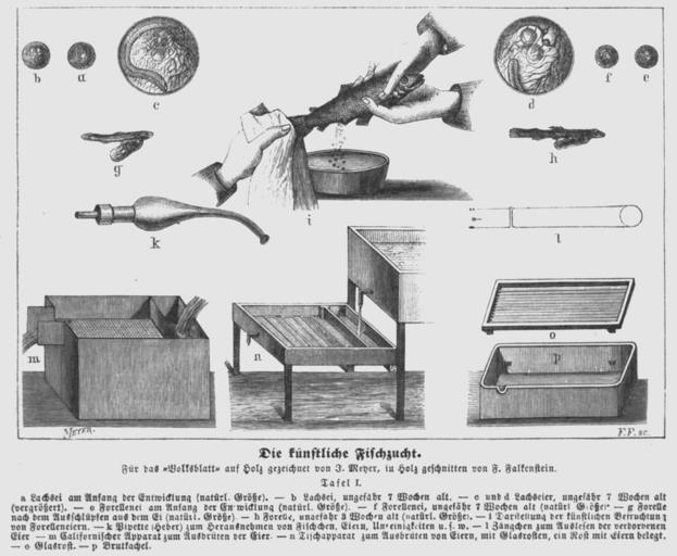 | Keywords: Hottinger Volksblatt 1878 228 Bild1.jpg künstliche Fischzucht Tafel I man-made fish farming Table I Volksblatt Eine Wochenzeitschrift mit Bildern Herausgegeben von Dr Christlieb Gotthold Hottinger self scanned Seite 228 1878 Straßburg im Elsaß Verlag von Dr Hottingers Volksblatt PD-old Hottinger's Volksblatt 1878 Fish farming in Germany |