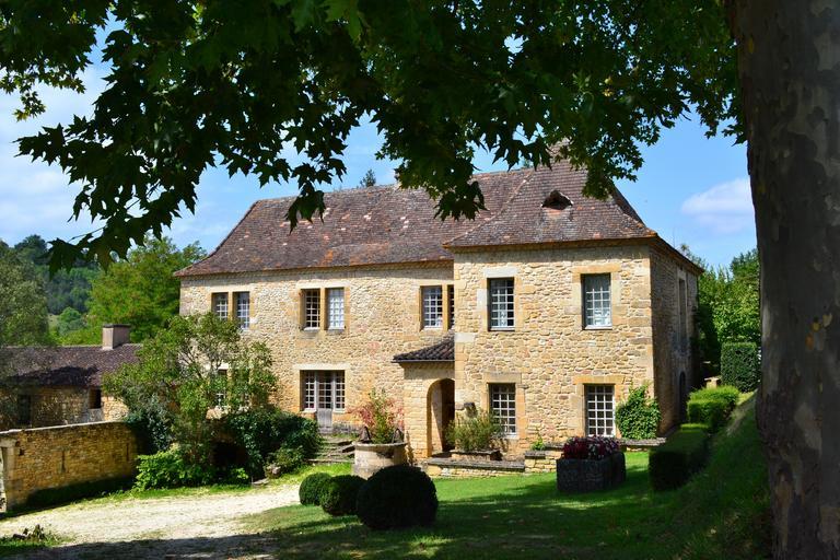 Keywords: house stone house dordogne perigord plazac périgord windows roof bushes tree path boxwood wall france