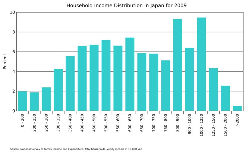 | Keywords: Household income distribution in Japan-2009.svg translate yes en Distribution of household income in Japan in 2009 in 10 000 yen Source National Survey of Family Income and Expenditure 2016-06-08 own Delphi234 other versions cc-zero Income distribution Economy of Japan |
