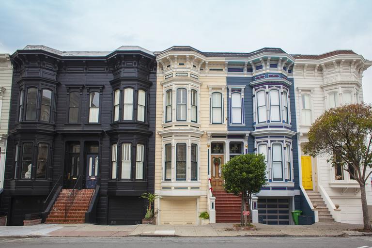 Keywords: houses facades architecture building exterior home residential property entrance front neighborhood oriels colors windows traditional urban