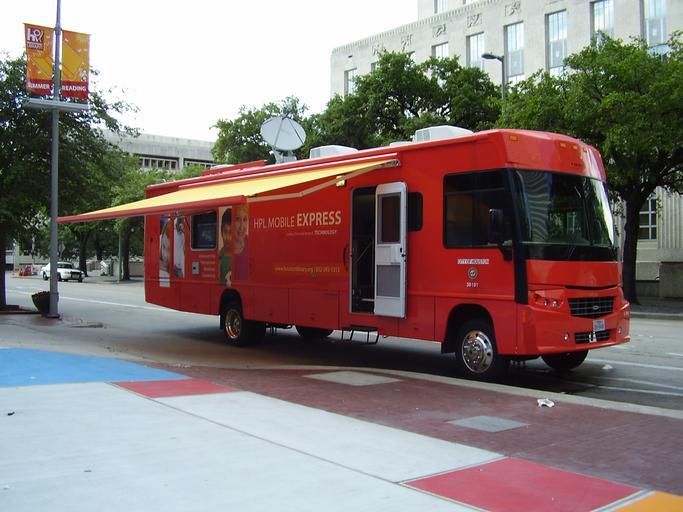 Keywords: HoustonPublicLibraryBookmobile.JPG en Houston Public Library bookmobile Own WhisperToMe Public domain Transport in Houston Libraries in Houston Texas Bookmobiles in the United States