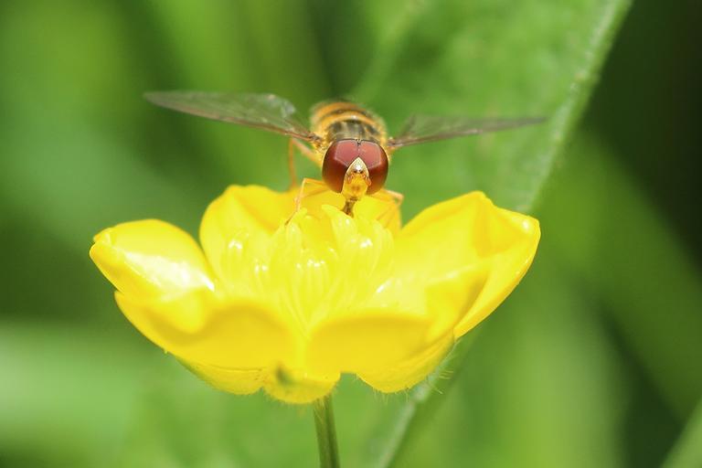 Keywords: hoverfly buttercup macro public record yellow blossom bloom pollen wild flower