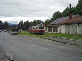 | Keywords: Hronec 830 railcar.JPG 830 marked as M262 belonging to KŽC Doprava in Hronec Slovakia at the end of a normal-gauge line from Chvatimech The other tracks are narrow-gauge and belong to Čierny Hron Railway 2014-08-21 13 21 03 own Jan Pešula cc-zero Uploaded with UploadWizard Hronec CZ Class 830 of KŽC Doprava Čiernohronská železnica |