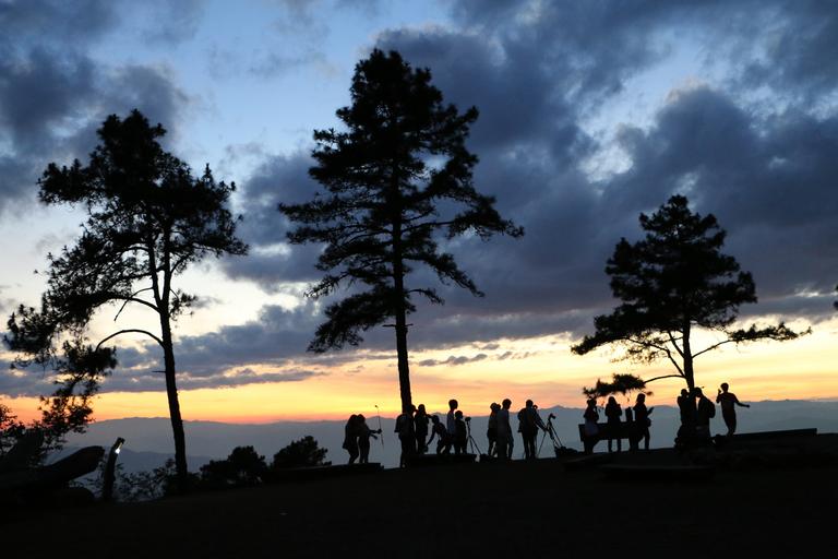 Keywords: huay nam dang thailand evening sunset trees silhouette people taking picture