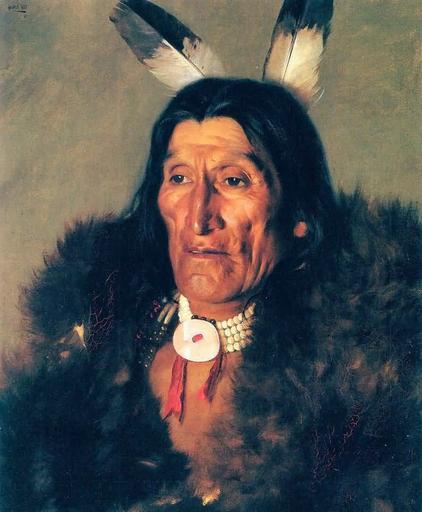 | Keywords: Hubert Vos- Sioux Chief In Buffalo Robes.jpg en Sioux Chief In Buffalo Robes oil on canvas painting by Hubert Vos private collection Creator Hubert Vos early 20th century prior to 1933 PD-old-auto 1935 Sioux Hubert Vos Fur garments in art Bison clothing in art Portrait paintings of Native Americans Fur fashion in 1933 |