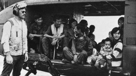 | Keywords: Huey with refugees on USS Midway (CVA-41) off Vietnam in 1975.jpg Vietnamese refugees in VNAF Bell UH-1D/H Huey on the flight deck of the aircraft carrier USS Midway CVA-41 during Operation Frequent Wind in the South China Sea U S Navy photo http //www navysite de/cruisebooks/cv41-76/231 htm from the http //www navysite de/cruisebooks/cv41-76/index_018 htm USS Midway CV-41 1975-76 cruise book available at http //navysite de/cruisebooks/index html Navysite de 1975-04-29 USN PD-USGov-Military-Navy Aboard USS Midway CV-41 Operation Frequent Wind Air force of South Vietnam VNAF Bell UH-1 Iroquois in the Vietnam War |