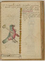 Keywords: Hueytozoztli, Continuation of the Festival of Bird Sacrifices, the Fourth Month of the Aztec Solar Calendar WDL6709.png Artwork ru Това Хуан де около 1546 г   около 1626 г fr Tovar Jean de 1546-1626 env en Tovar Juan de circa 1546-circa 1626 zh 胡安·德·托瓦尔,约 1546 年 - 约 1626 年 pt Tovar Juan de por volta de 1546-por volta de 1626 ar خوان دو توفار، حوالي 1546-حوالي 1626 es Tovar Juan de circa 1546-circa 1626 ru Уэйтосостли п одолжение п аздника же твоп иношения птиц 4-й месяц солнечного календа я ацтеков fr Hueytozoztli suite de la fête des sacrifices d'oiseaux quatrième mois du calendrier solaire aztèque en Hueytozoztli Continuation of the Festival of Bird Sacrifices the Fourth Month of the Aztec Solar Calendar zh 阿兹特克太阳历的第 4 个 大守 ,祭鸟节继续 pt Hueytozoztli continuação do festival dos sacrifícios de aves o quarto mês do calendário solar asteca ar ويتوسوستلي، استكمال مهرجان قرابين الطير، الشهر الرابع من التقويم الشمسي الأزتكي ru Кодекс Това а авто ом кото ого считается мексиканский иезуит XVI века Хуан де Това соде жит под обную инфо мацию об об ядах и це емониях ацтеков известных также как мешика Кодекс п оиллюст и ован 51 аква ельным исунком на полную ст аницу Рисунки в кото ых наблюдается значительное влияние пиктог афических укописей доколониальных в емен обладают исключительными художественными достоинствами Рукопись состоит из т ех азделов В пе вом азделе описана исто ия путешествий ацтеков до п ибытия испанцев Вто ой аздел п едставляет собой иллюст и ованную исто ию ацтеков В т етьем азделе находится календа ь Това а в кото ом п ослеживается календа ный цикл ацтеков с месяцами неделями днями воск есными буквами и елигиозными п аздниками х истианского 365-дневного года а этой иллюст ации из т етьего аздела изоб ажена птица с се ыми и к асными пе ьями п онзенная костяным о удием Этот месяц соответствующий месяцу в кото ом отмечают день памяти евангелиста а ка и известный как уэйтосостли большое бдение знаменовал собой п аздник п иношения в же тву птиц п оисходивший в течение всего месяца Богами-пок овителями этого месяца п иходящегося на ап ель-май были Центеотль богиня куку узы и Чикомекакоатль Семь змей богиня маиса и плодо одия В этом месяце п оходил об яд благословения молодой куку узы Заголовок иллюст ации исп авлен д угим поче ком <br>Календа ь ацтеков; Боги ацтеков; Ацтеки; Календа и; Кодекс; Индейцы ексики; Ко енные на одности; езоаме ика; Кодекс Това а fr Le codex Tovar attribué à Jean de Tovar jésuite mexicain du XVI<sup>e</sup> siècle contient des informations détaillées sur les rites et les cérémonies des Aztèques également connus sous le nom de Mexicas Il est illustré de 51 aquarelles de la taille d'une page Fortement influencées par les manuscrits pictographiques de la période précontact ces peintures sont d'une qualité artistique exceptionnelle Le manuscrit est divisé en trois sections La première section contient une histoire des voyages des Aztèques avant l'arrivée des Espagnols La deuxième section est une histoire illustrée des Aztèques Dans la troisième section le calendrier de Tovar transcrit un calendrier aztèque continu avec les mois les semaines les jours les lettres dominicales et les fêtes liturgiques d'une année chrétienne de 365 jours Cette illustration extraite de la troisième section représente un oiseau au plumage gris et rouge transpercé d'un instrument en os Ce mois appelé Hueytozoztli grande veillée et associé au jour saint de Marc l'évangéliste commémorait la fête des sacrifices d'oiseaux ayant lieu à cette période Les dieux protecteurs de ce mois assimilé à avril/mai étaient Centeotl divinité féminine du maïs et Chicomecoatl déesse du maïs et de la fertilité dont le nom signifie « sept serpents » Au cours de ce mois le nouveau maïs était béni Le titre de l'illustration fut corrigé par une autre main <br>Calendrier aztèque; Dieux aztèques; Aztèques; Calendriers; Codex; Indiens du Mexique; Peuples autochtones; Méso-Amérique; Codex Tovar en The Tovar Codex attributed to the 16th-century Mexican Jesuit Juan de Tovar contains detailed information about the rites and ceremonies of the Aztecs also known as Mexica The codex is illustrated with 51 full-page paintings in watercolor Strongly influenced by pre-contact pictographic manuscripts the paintings are of exceptional artistic quality The manuscript is divided into three sections The first section is a history of the travels of the Aztecs prior to the arrival of the Spanish The second section is an illustrated 