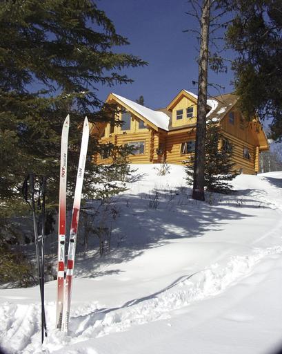 Keywords: huge log building wooden architecture beautiful winter season nature snow cold dry home wintry freezing cross country skies winter magic