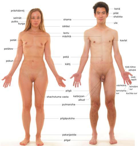 | Keywords: Human anatomy in Moksha.svg en Human male and female - anatomical features pointed out File Anterior view of human female and male without labels jpg 2012-12-21 Mikael Häggström Human body images in different languages cc-zero Personality rights Nude men and women with white background |