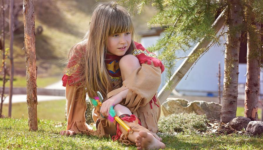 Keywords: human child girl blond long hair face indian play out nature