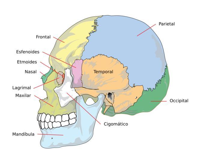 Keywords: Human skull side simplified (bones)-es.svg en the adult skull is normally made up of 22 bones Except for the mandible all ofutures semi-rigid articulations formed by bony ossification the presence of Sharpey's fibres permitting a little flexibility es El cráneo adulto está compuesto normalmente por 22 huesos Excepto por la mandíbula todos los huesos del cráneo están unidos entre ellos por suturas que son articulaciones semi-rígidas formadas por osificaciones la presencia de fibras de Sharpey permite un poco de flexibilidad Derivative of Image Human skull side simplified bones svg Original by LadyofHats Translated by Ascánder Other versions/Human skull side bones SVG files on human skull