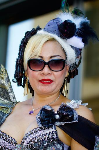 Keywords: human woman portrait street parade festival costume red lips