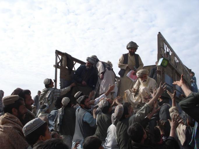 Keywords: Humanitarian aid DVIDS77094.jpg en Village elders hand out much-needed humanitarian aid to residents of Kuhak Village Arghandab District Kandahar province Dec 18 The elders assisted Afghan national police and coalition forces distribute two tons of humanitarian aid consisting of rice beans flour chai toothbrushes and toothpaste The aid will help villagers make it through the harsh Afghan winter 2008-02-12 https //www dvidshub net/image/77094 77094 2008-02-12 21 35 KANDAHAR AF PD-USGov Kandahar Province Images from DoD uploaded by Fæ |
