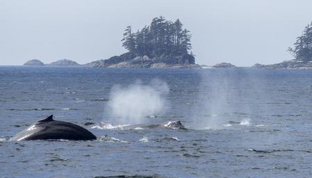 Keywords: humpback whale blowing spraying diving natural spectacle nature mammal animal wildlife jumping colossus aquatic ocean water splash pacific fin head lob tailing maritime life island green island british columbia canada