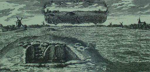 Keywords: Hunebed D13 bij Eext (prent).jpg nl Prent van Hunebed D11 tussen Eext en Anloo nl informatiepaneel nabij Hunebed 1760 Johannes van Lier PD-old-100 Hunebed D13 in Eext Aa en Hunze