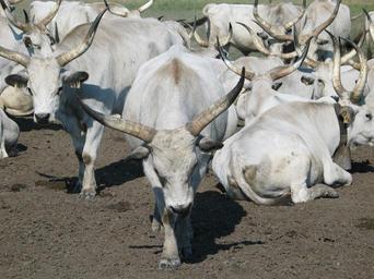 Keywords: Hungarian Grey Cattle2.jpg Hungarian Grey cows in Hortobágy National Park Hungary 2006-07-06 own assumed Nl74 Hungarian Grey cattle