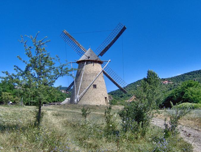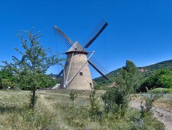 Keywords: hungary landscape scenic forest trees woods sky clouds windmill mountains nature outside country countryside summer spring