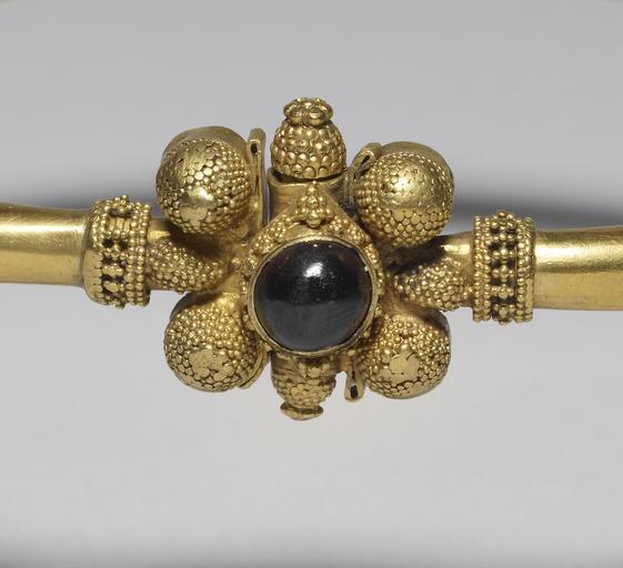 | Keywords: Hunnish - Bracelet - Walters 571082 - Detail Front.jpg This superb tubular bracelet closes with a clasp decorated with granulation--a hallmark of Hunnish craftsmanship--around a central round garnet The backs of the hemispheres are decorated with a filigree While Hunnish women also wore jewelry the large size of this bracelet suggests it would have been worn by a man high on the arm early Other date century 5 Early Medieval gold garnet cm 2 3 11 3 10 4 accession number 57 1082 23641 Henri Daguerre Paris date and mode of acquisition unknown Henry Walters city Baltimore Walters Art Museum Henry Walters Acquired by Henry Walters 1928 Early Christian and Byzantine Art Baltimore Museum of Art Baltimore 1947 Romans and Barbarians Museum of Fine Arts Boston Boston 1976-1977 Jewelry - Ancient to Modern The Walters Art Gallery Baltimore 1979-1980 Objects of Adornment Five Thousand Years of Jewelry from the Walters Art Gallery Baltimore Cooper-Hewitt National Design Museum New York; Chrysler Museum of Art Norfolk; Carnegie Museum of Art Pittsburgh; San Antonio Museum of Art San Antonio; Philbrook Museum of Art Tulsa; Honolulu Academy of Arts Honolulu; New Orleans Museum of Art New Orleans; Milwaukee Art Museum Milwaukee; Minneapolis Institute of Arts Minneapolis; Toledo Museum of Art Toledo; The John and Mable Ringling Museum of Art Sarasota 1984-1987 Jewelry from the Walters Art Museum and the Zucker Family Collection The Walters Art Gallery Baltimore 1987 place of origin southwest Russia Walters Art Museum license Medieval metalwork in the Walters Art Museum Jewellery in the Walters Art Museum Hunnic jewellery Media contributed by the Walters Art Museum needs category review |