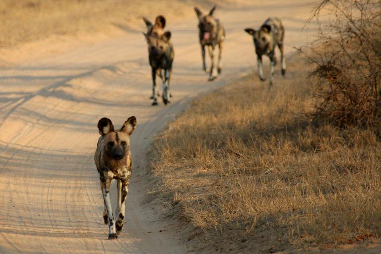 Keywords: hunting african africa safari wilderness south wildlife wild nature endangered animal mammal species national kruger park black-footed carnivore walk jackal carnivorous fierce eat hunt stalking stalk walking road trekking tracking landscape fur pathway adventure track trail