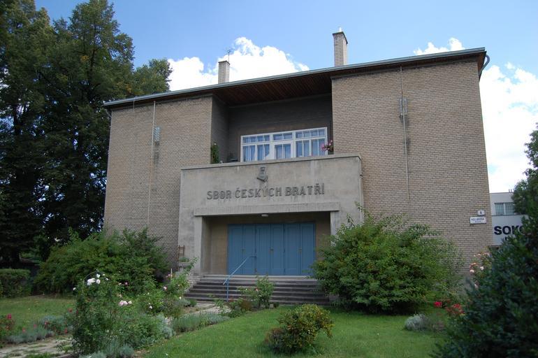 Keywords: Husův sbor - čelní pohled, Prostějov.jpg cs Husův sbor - čelní pohled Prostějov Own 2009-08-07 xkomczax Own work all rights released Public domain Gospel Hall of Evangelical Church of Czech Brethren in Prostějov Files by Jiří Komárek