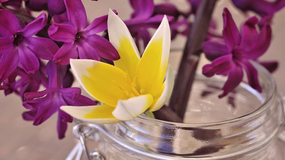 Keywords: hyacinth flower spring flower fragrant flowers small star tulip yellow-white plant glass close