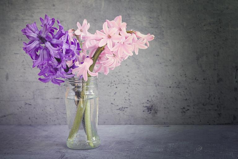 Keywords: hyacinth flowers vase glass fragrant flowers schnittblume purple pink spring flowers spring close