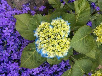 Keywords: hydrangea blue blossom bloom flower greenhouse hydrangea