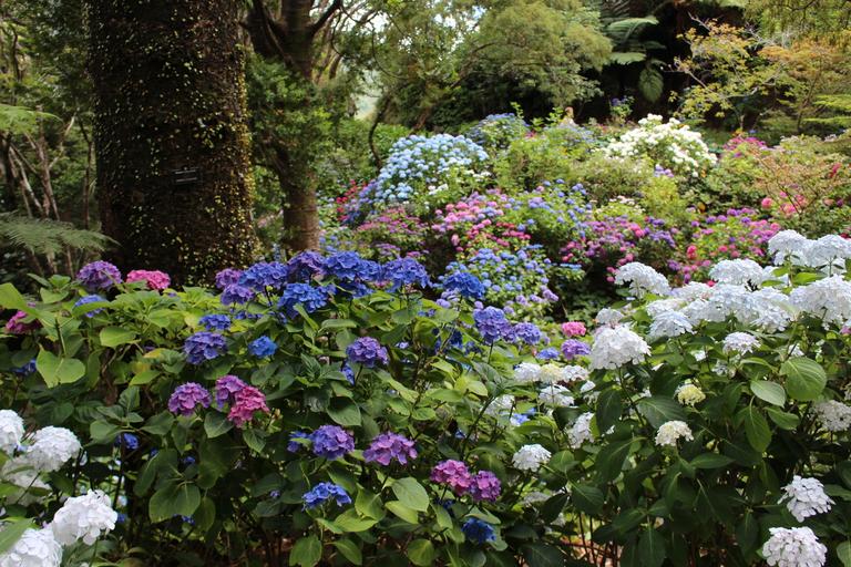 Keywords: hydrangea forest floor forest flowers blossom spring nature floor wild woods bloom trees scenic vivid colorful fresh color plant blue white flowers pink purple
