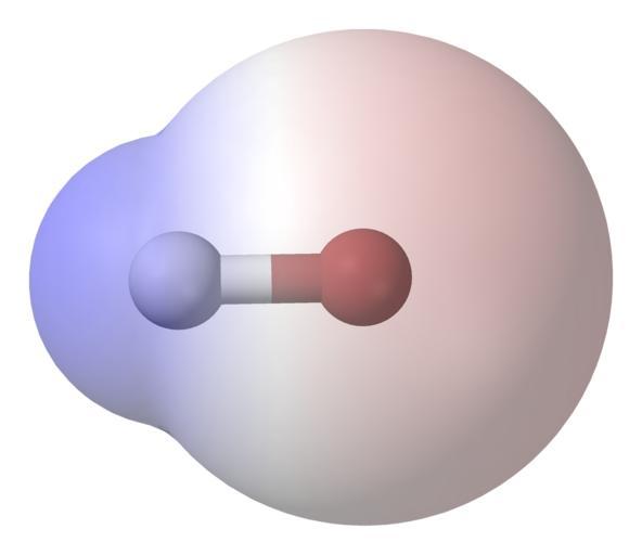 | Keywords: Hydrogen-bromide-elpot-transparent-3D-balls.png A van der Waals' surface coloured according to charge superimposed on a ball-and-stick model of the hydrogen bromide molecule HBr Red represents partially negatively charged regions blue represents partially positively charged regions and white represents neutral uncharged regions Created in Accelrys DS Visualizer 1 5 edited with Photoshop Elements 3 0 Own 2007-11-23 Ben Mills Benjah-bmm27 Images by Ben Mills Hydrogen bromide Molecular electrical potential surfaces |