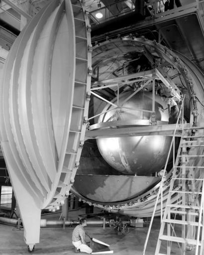 | Keywords: hydrogen tank hydrogentank k-site ksite lewis research center lewisresearchcenter plum brook station plumbrookstation blackandwhite monochrome black and white Thirteen foot hydrogen tank mounted in K-Site Test Chamber at Plum Brook Station, Lewis Research Center now known as Glenn Research Center. Thirteen foot hydrogen tank mounted in K-Site Test Chamber at Plum Brook Station, Lewis Research Center now known as Glenn Research Center. | ||||