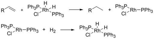 Keywords: Hydrogenation with Wilkinson complex outline.png Selfmade with ChemDraw Hydrogenation reactions 2006-02-24 own assumed Calvero