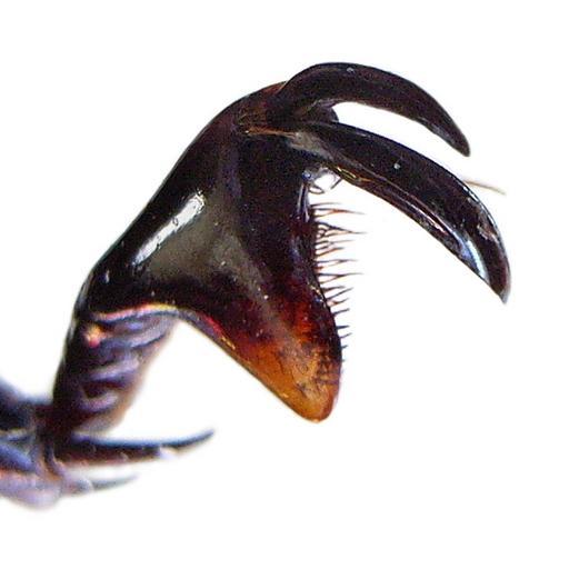 Keywords: Hydrous piceus front tibia male.jpg front tibia of male Hydrous piceus photo made by myself 2007-03-26 Siga public domain Hydrophilus piceus anatomy Coleoptera legs