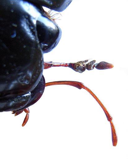 Keywords: Hydrous piceus head.jpg head of Hydrous piceus photo made by myself 2007-03-26 Siga public domain Hydrophilus piceus anatomy Coleoptera heads