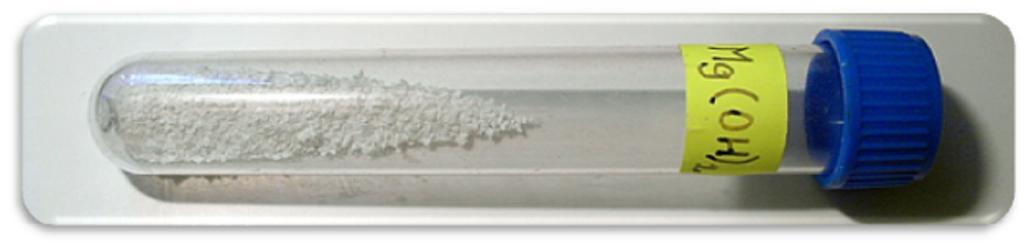 Keywords: Hydroxid hořečnatý.PNG Hydroxid hořečnatý - Mg OH 2 Vlastní sbírka 2007-06-09 Ondřej Mangl Není nutno Magnesium hydroxide Samples of inorganic compounds