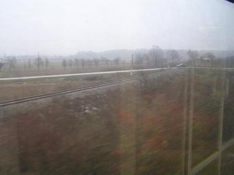 Keywords: Hž Požega line.JPG Paneuropean koridor 10 split onto the Nova Kapela-Požega line Taken from a train at speed above 100 km/h Own 2007-11-16 Phantom25 Novska “Tovarnik railway Nova Kapela “NaÅ¡ice railway