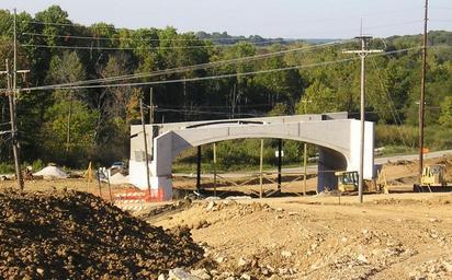 Keywords: i-69 i69 interstate 69 interstate69 indiana monroe county monroecounty road bridge construction interstate freeway infrastructure precast concrete bridge precastconcretebridge con/span conspan contech engineered solutions contechengineeredsolutions precast Near Industrial Drive in Monroe County, Indiana, a precast, modular bridge has been erected to carry realigned Vernal Pike/17th Street over N. Packinghouse Road. The structure, a product of Contech Engineered Solutions, is called a Con/Span® bridge. The bridge components are built off site then trucked in and assembled. This particular model is an O-Series® Twin Leaf. In a process called "loose lift," the area on each side of the structure will be built up with compacted soil and rock to form the new roadway for Vernal Pike. I-69 Development Partners/Isolux (Indiana I-69 Project, Section 5). Near Industrial Drive in Monroe County, Indiana, a precast, modular bridge has been erected to carry realigned Vernal Pike/17th Street over N. Packinghouse Road. The structure, a product of Contech Engineered Solutions, is called a Con/Span® bridge. The bridge components are built off site then trucked in and assembled. This particular model is an O-Series® Twin Leaf. In a process called "loose lift," the area on each side of the structure will be built up with compacted soil and rock to form the new roadway for Vernal Pike. I-69 Development Partners/Isolux (Indiana I-69 Project, Section 5). |