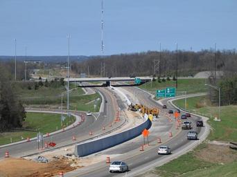 Keywords: i-69 i69 interstate 69 interstate69 indiana monroe county monroecounty road bridge overpass freeway interstate construction i-69 development partners i69developmentpartners isolux corsán isoluxcorsán Looking north from near the 17th Street/Vernal Pike overpass construction zone in Bloomington, Monroe County, Indiana, toward the State Road 37/State Road 46 interchange. In this location, as well as all throughout the city of Bloomington and up to Sample Road, I-69 will be 3 lanes in each direction. The added 3rd lanes are being carved from the State Road 37 median, with a 4'6" high barrier wall (pictured) constructed to safely separate the traffic. I-69 Development Partners; Isolux Corsán, prime contractor (Indiana I-69 Corridor Project, Section 5). Looking north from near the 17th Street/Vernal Pike overpass construction zone in Bloomington, Monroe County, Indiana, toward the State Road 37/State Road 46 interchange. In this location, as well as all throughout the city of Bloomington and up to Sample Road, I-69 will be 3 lanes in each direction. The added 3rd lanes are being carved from the State Road 37 median, with a 4'6" high barrier wall (pictured) constructed to safely separate the traffic. I-69 Development Partners; Isolux Corsán, prime contractor (Indiana I-69 Corridor Project, Section 5).