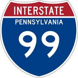 Keywords: I-99 (PA) Metric.svg User Ltljltlj/Template 600 mm by 600 mm 24 in by 24 in Interstate shield metric version made to the specifications of the http //mutcd fhwa dot gov/SHSm/Guide pdf 2004 edition of Standard Highway Signs sign M1-1 Uses the http //www triskele com/fonts/index html Roadgeek 2005 fonts United States law does not permit the copyrighting of typeface designs and the fonts are meant to be copies of a U S Government-produced work anyway Colors are from http //mutcd fhwa dot gov/kno-colorspec htm Pantone Red 187 and Blue 294 converted to RGB by http //www reeddesign co uk/test/pantone2rgb html The outside border has a width of 1 1 mm and a color of black so it shows up; in reality signs have no outside border Interstate Highway shields with name of state Metric 99 Pennsylvania