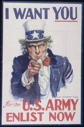 Keywords: "I Want You For The U.S. Army Enlist Now" - NARA - 513533.jpg Scope and content General notes Use War and Conflict Number 728 when ordering a reproduction or requesting information about this image 513533 Local identifier 44-PA-71 Office for Emergency Management Office of War Information Domestic Operations Branch Bureau of Special Services 03/09/1943 - 09/15/1945 Still Picture Records Section Special Media Archives Services Division NWCS-S National Archives at College Park 8601 Adelphi Road College Park MD 20740-6001 1941 - 1945 Record group Record Group 44 Records of the Office of Government Reports 1932 - 1947 Record group ARC 373 World War II Posters compiled 1942 - 1945 Series ARC 513498 File unit File unit ARC Variant control numbers NAIL Control Number NWDNS-44-PA-71 Other versions <gallery> File I_Want_You_For_The_U S _Army_Enlist_Now _-_NARA_-_513533 tif tif File I_Want_You_For_The_U S _Army_Enlist_Now _-_NARA_-_513533 jpg jpg </gallery> NARA-cooperation PD-USGov World War II recruitment posters from the United States I want you for the U S Army nearest recruiting station Uncle Sam in propaganda |