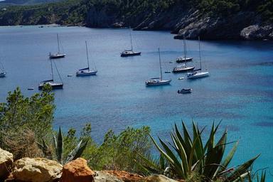 Keywords: ibiza sea booked spain turquoise balearic islands boats water mediterranean landscape